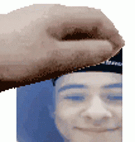 Opis sadržaja: a hand is holding a man 's head in front of a mirror .