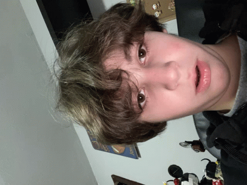 Opis sadržaja: a boy with a surprised look on his face is standing in front of a sign that says ' a ' on it