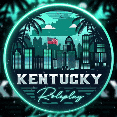Opis sadržaja: a logo for kentucky roleplay with a city skyline in the background