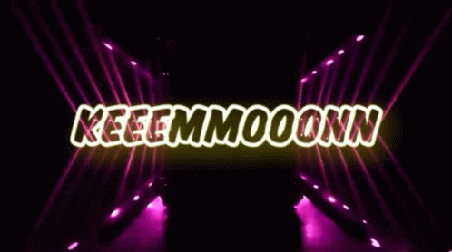 Opis sadržaja: a neon sign that says keeemmooonn on a purple background