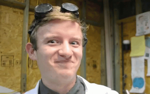 Opis sadržaja: a man wearing a lab coat and goggles making a face