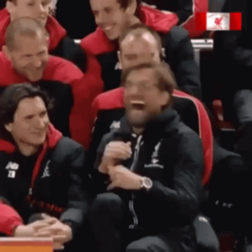 Opis sadržaja: a group of men are sitting in a stadium and one of them is wearing a black jacket that says liverpool