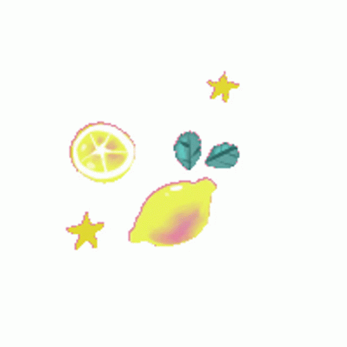 Opis sadržaja: a drawing of a lemon , leaves and stars on a white background