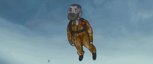 Opis sadržaja: a cartoon drawing of a man in a jumpsuit with a backpack