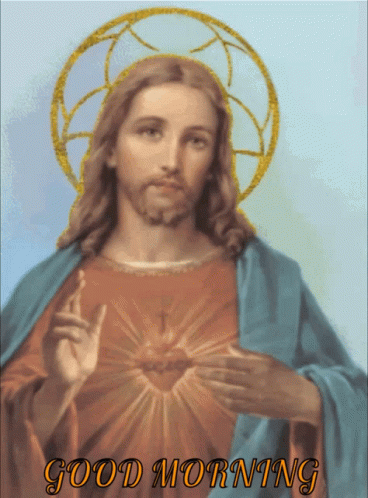 Opis sadržaja: a picture of jesus with the words " good morning " on the bottom