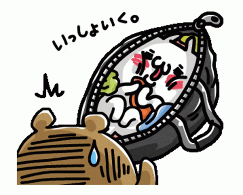 Opis sadržaja: a cartoon drawing of a bear looking at a purse that has a zipper