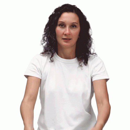 Opis sadržaja: a woman in a white t-shirt is making a surprised face