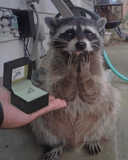 Opis sadržaja: a raccoon is holding a box with a ring inside