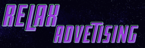 Opis sadržaja: purple and green text that says relax advertising on a dark background