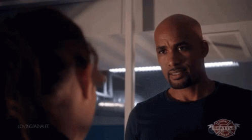 Opis sadržaja: a man in a seattle fire department shirt is talking to a woman
