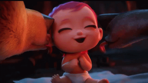 Opis sadržaja: a baby in a diaper is being kissed by a bear in a cartoon .