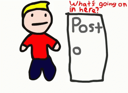 Opis sadržaja: a man in a red shirt is standing in front of a door with the letter p on it
