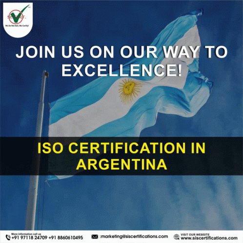 Opis sadržaja: an advertisement for iso certification in argentina with a flag in the background