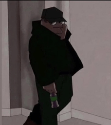 Opis sadržaja: a cartoon man is standing in a hallway holding a bottle of soda .