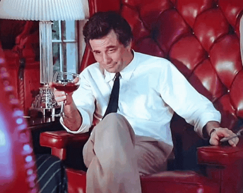 Opis sadržaja: a man in a white shirt and tie is sitting in a red leather chair holding a glass of wine