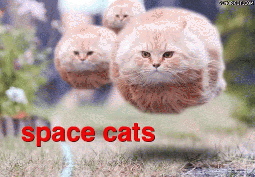 Opis sadržaja: three cats are flying through the air with the words space cats written on the bottom