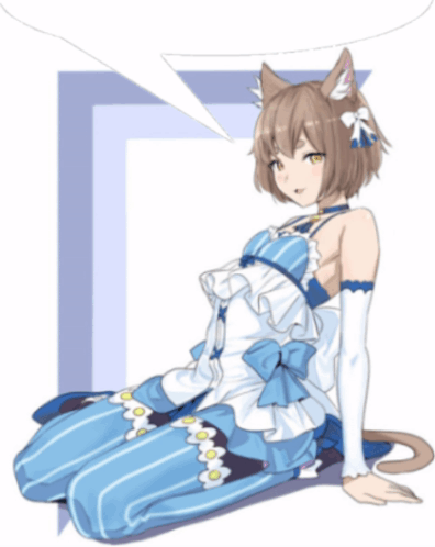 Opis sadržaja: a drawing of a girl with cat ears and a blue dress