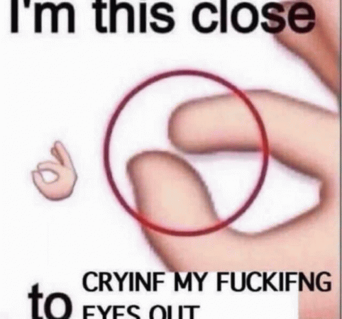 Opis sadržaja: a close up of a person 's hand with the words `` i 'm this close to crying my fucking eyes out '' .
