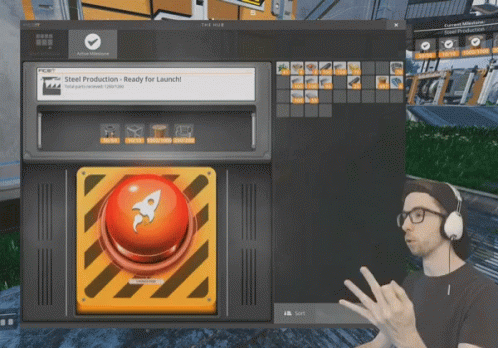 Opis sadržaja: a man wearing headphones looks at a screen that says " steel production - ready for launch "