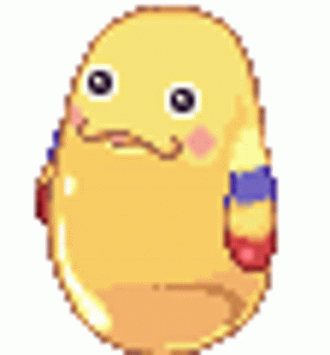Opis sadržaja: a pixel art drawing of a yellow egg with a mustache and red arms .