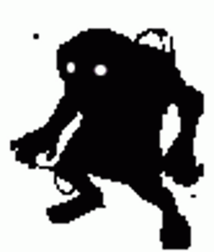 Opis sadržaja: a black and white silhouette of a monster with glowing eyes standing on a white background .