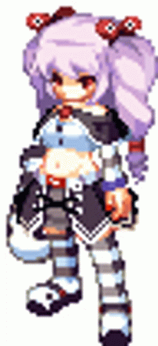 Opis sadržaja: a pixel art drawing of a girl with purple hair and a bow .