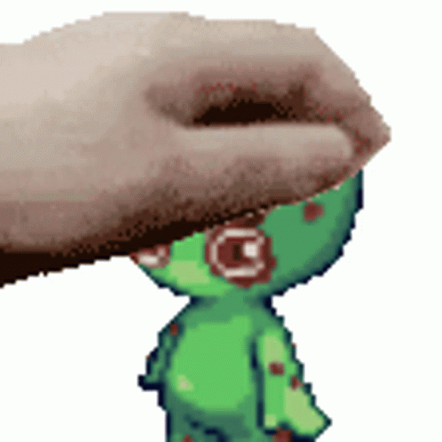 Opis sadržaja: a pixel art of a hand holding a green frog doll .
