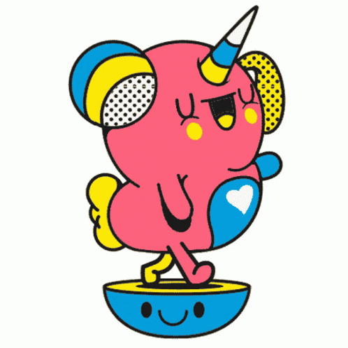 Opis sadržaja: a cartoon character with a unicorn horn is standing on a blue bowl