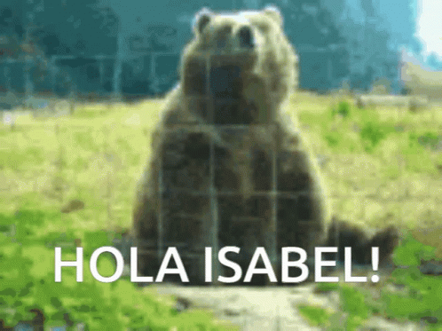 Opis sadržaja: a blurred image of a bear with the words hola isabel in white letters