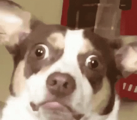 Opis sadržaja: a brown and white dog with a surprised look on its face .
