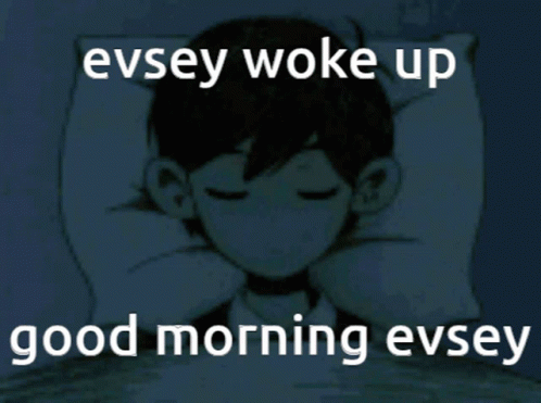 Opis sadržaja: a picture of a boy sleeping with the words evsey woke up good morning evsey on the bottom