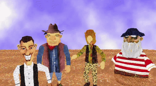 Opis sadržaja: a group of cartoon characters standing next to each other including a cowboy and a pirate