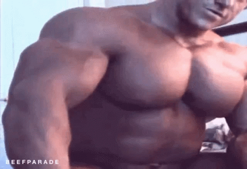 Опис садржаја: a shirtless man with very large muscles is flexing his muscles .