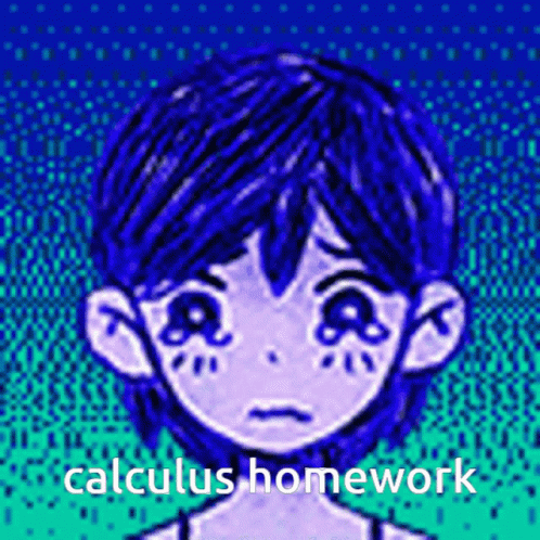 Опис садржаја: a drawing of a girl with blue hair and the words calculus homework on the bottom