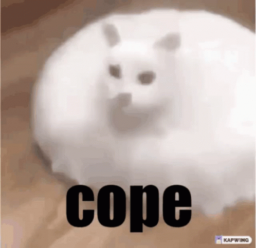 Опис садржаја: a picture of a white cat with the word cope written below it