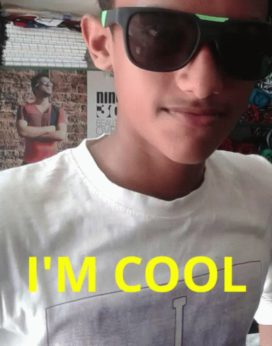 Опис садржаја: a boy wearing sunglasses and a shirt that says " i 'm cool "