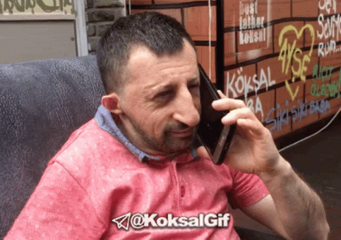 Опис садржаја: a man in a pink shirt is talking on a cell phone with the hashtag @koksalgif