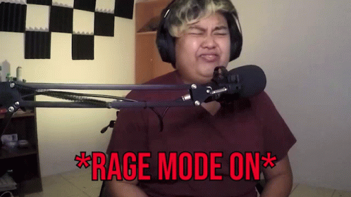 Опис садржаја: a man wearing headphones stands in front of a microphone and says " rage mode on * "