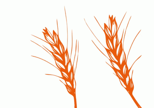 Innehållsbeskrivning: a drawing of two ears of wheat in orange on a white background