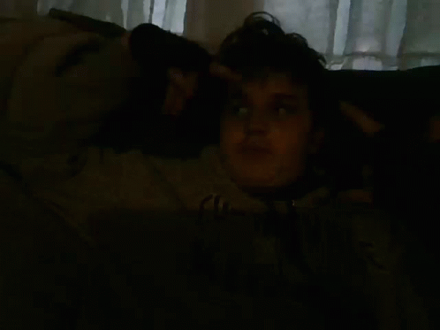 Innehållsbeskrivning: a person laying on a couch with their hand on their forehead wearing a sweatshirt that says " co " on it