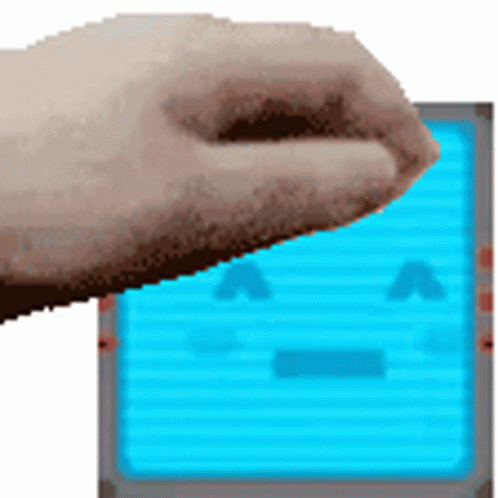 Maelezo ya Maudhui: a pixel art of a hand pressing a button on a computer screen .