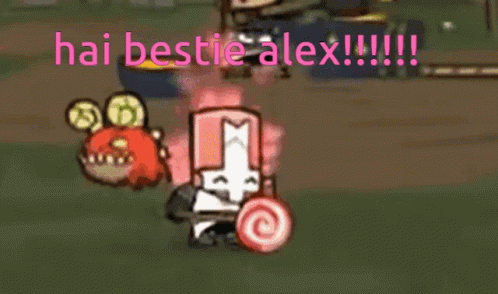 Maelezo ya Maudhui: a cartoon character standing in front of a rainbow with the words hai bestie alex