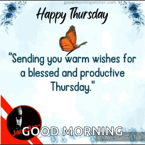 Maelezo ya Maudhui: a happy thursday greeting card with a butterfly and flowers