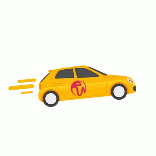 Maelezo ya Maudhui: a yellow car with a pink logo on the side is driving fast .