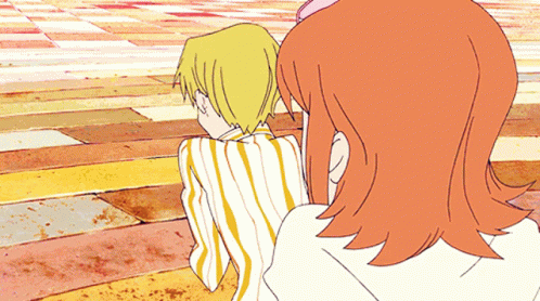ਸਮੱਗਰੀ ਦਾ ਵਰਣਨ: a cartoon drawing of a boy and a girl with orange hair
