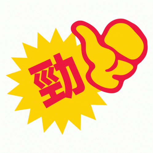 Descrição do conteúdo: a red star with chinese writing and a thumbs up