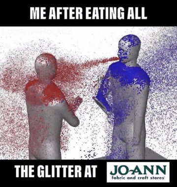 a poster for joann fabric and craft stores shows two people spraying glitter on each other