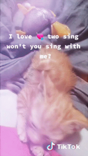 Descrierea conținutului: a cat laying on a bed next to a tiktok icon
