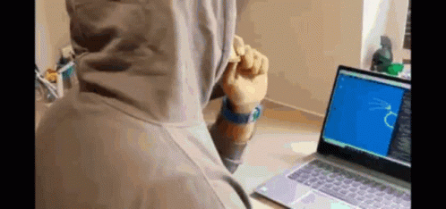 Descrierea conținutului: a person in a hoodie is sitting in front of a laptop