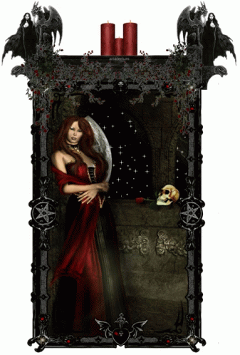Descrierea conținutului: a woman in a red dress is standing in front of a mirror